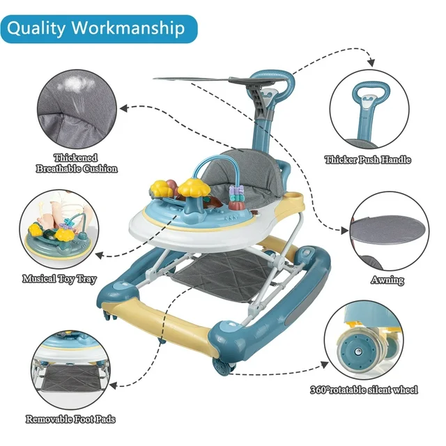 Activity Baby Walkers with Removable Toy Tray for Boys&Girls, Music - Unisex,Blue