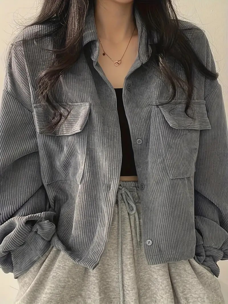 Button Front Flap Pockets Jacket, Casual Long Sleeve Jacket For Fall & Winter, Women's Clothing