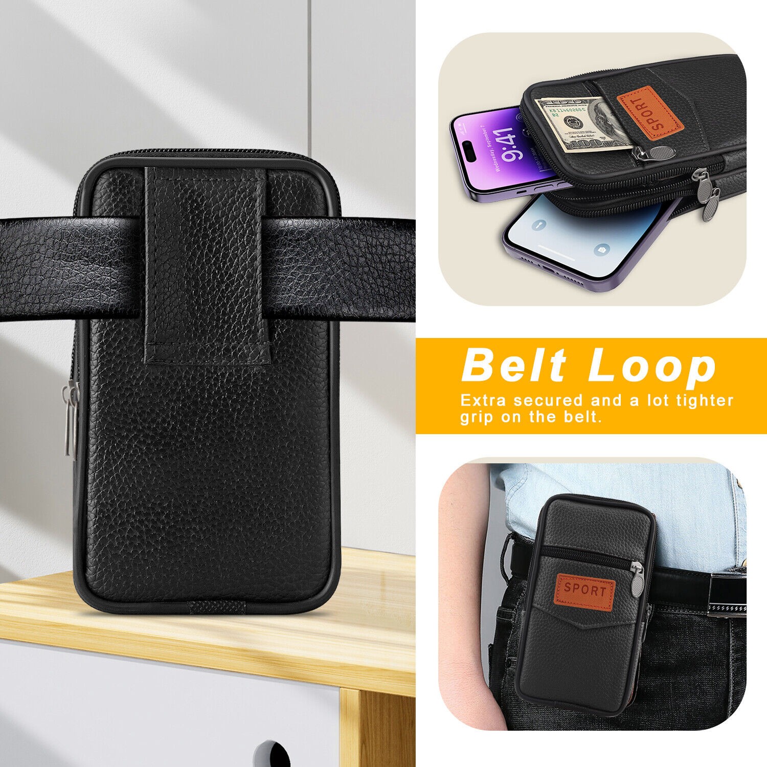 Cell Phone Holster Pouch Leather Wallet Holder Case Belt Loop For iPhone Samsung