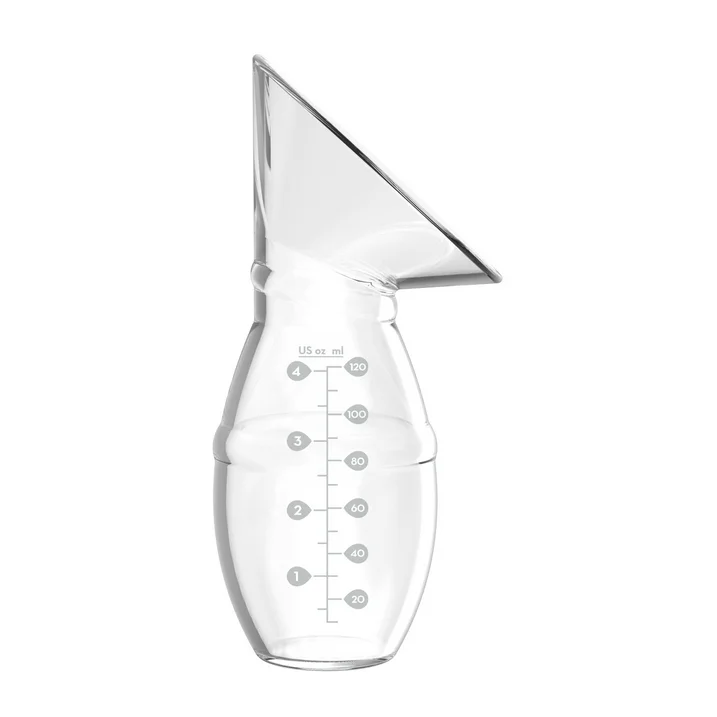 • Simply place it on your breast, squeeze the base of the pump once to create gentle suction, and let it go to work. It’s hands-free milk collection! The 100% silicone material is soft against your skin and conforms to breasts of every shape and size.