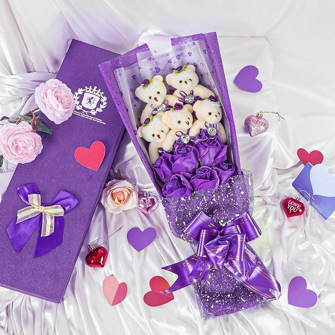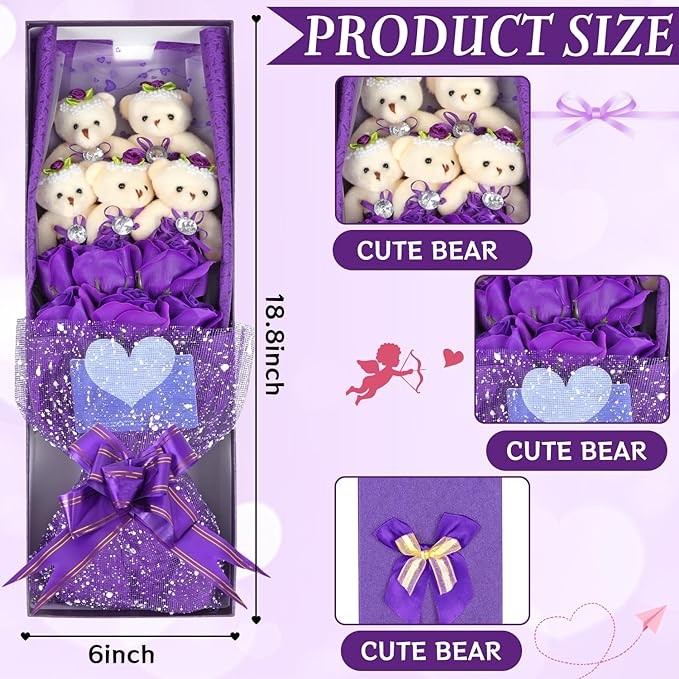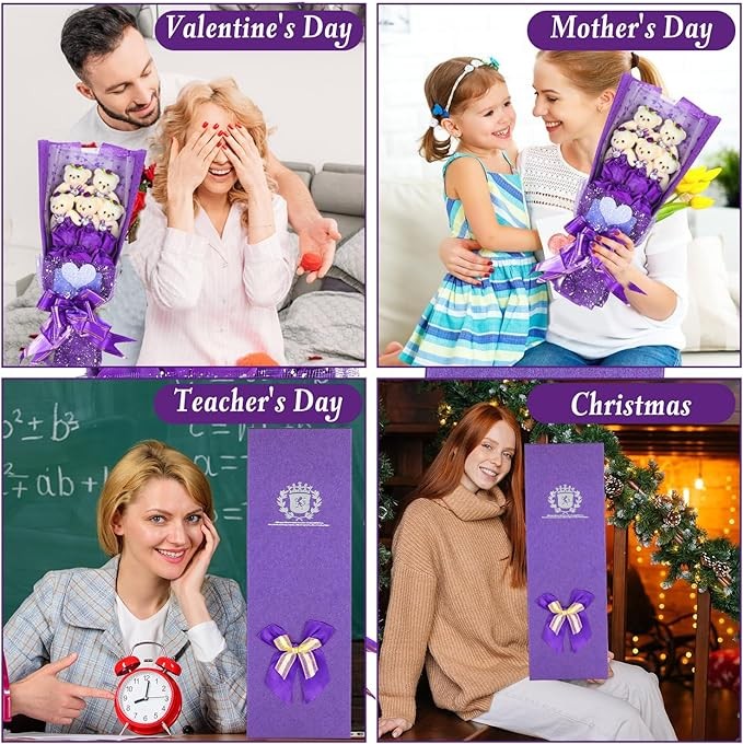 • Delicate Decoration: Our purple bear bouquet is perfect for party decor and doubles as adorable photo props. Hug these bears for cute and lovely photos.