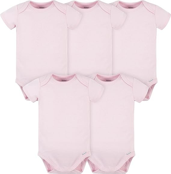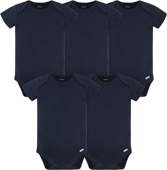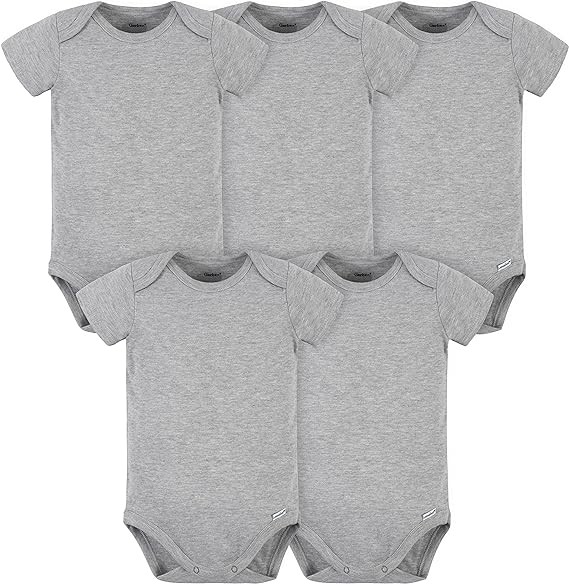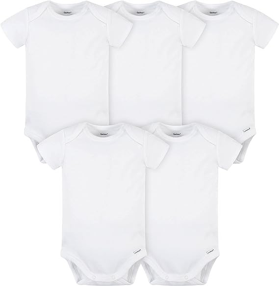 • Includes five solid, short sleeve Onesies Brand bodysuits
