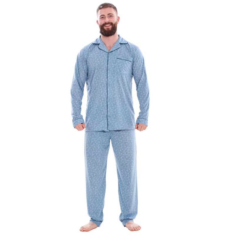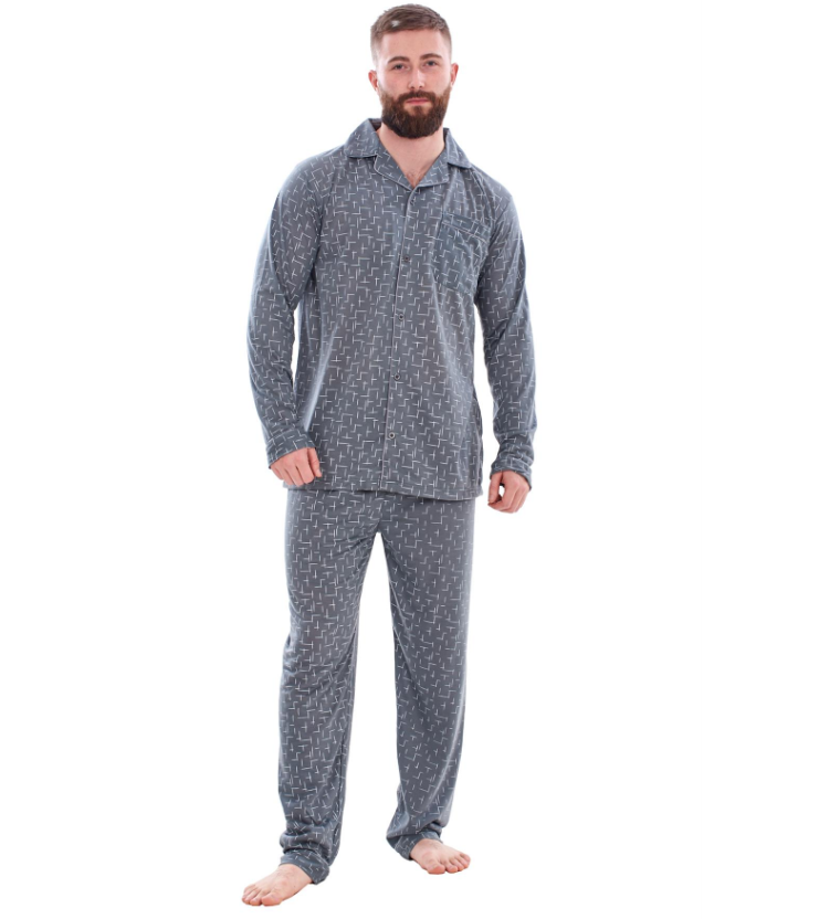 • Mens Classic Pyjama Sets Printed Rich Cotton Long Sleeve Nightwear Soft PJ's