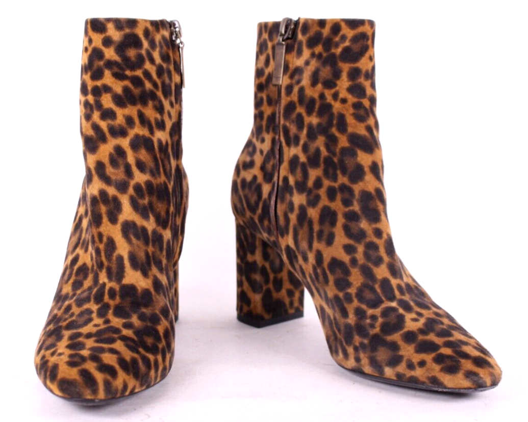 SAINT LAURENT Leopard Print Suede LOULOU Heeled Ankle Boots