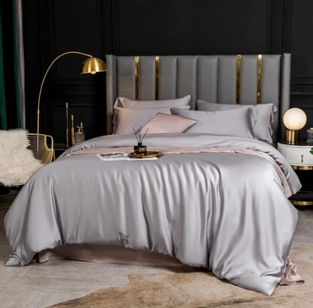 Soft Bedding Set Gray Reversible Duvet Cover Bed Sheet Pillow Silky Soft 4Pcs