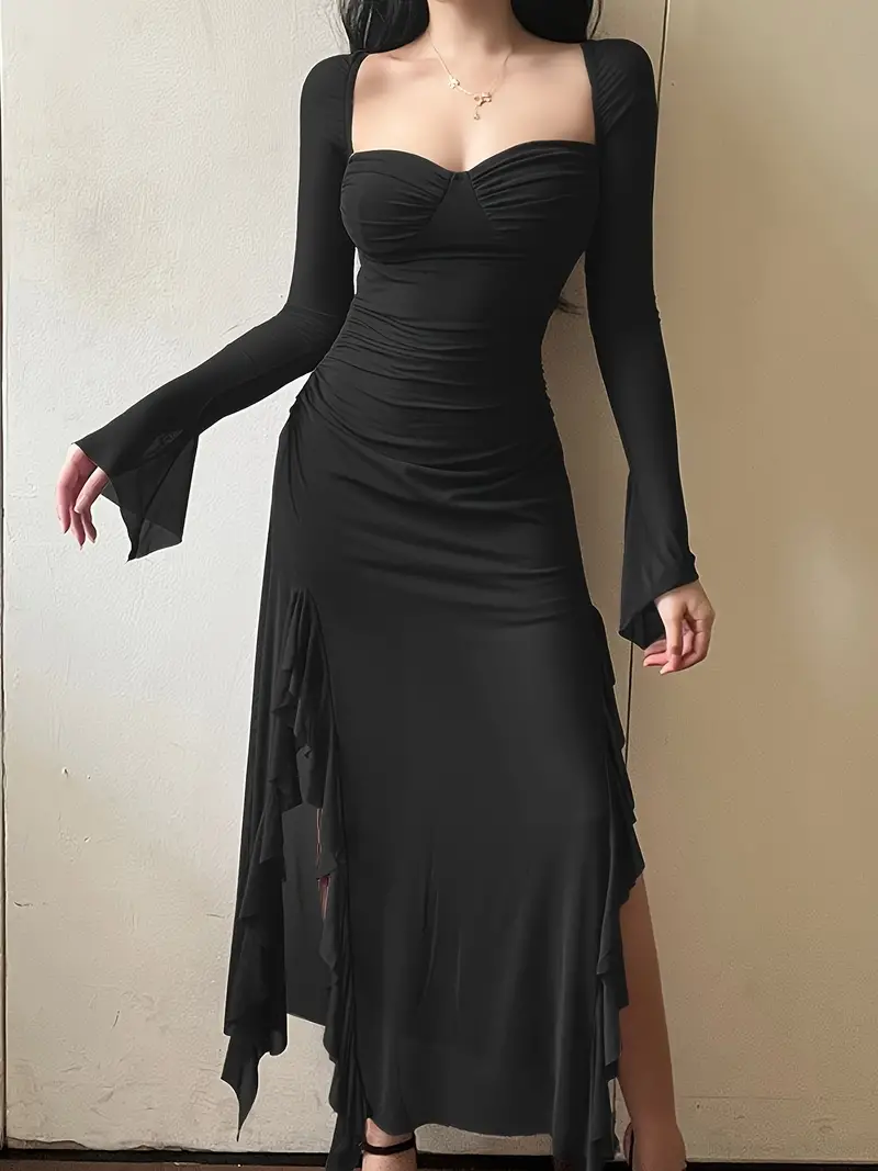 https://manomanostore.com/product/solid-ruffle-trim-split-asymmetrical-dress-elegant-flare-sleeve-mesh-ruched-dress-womens-clothing-t6836