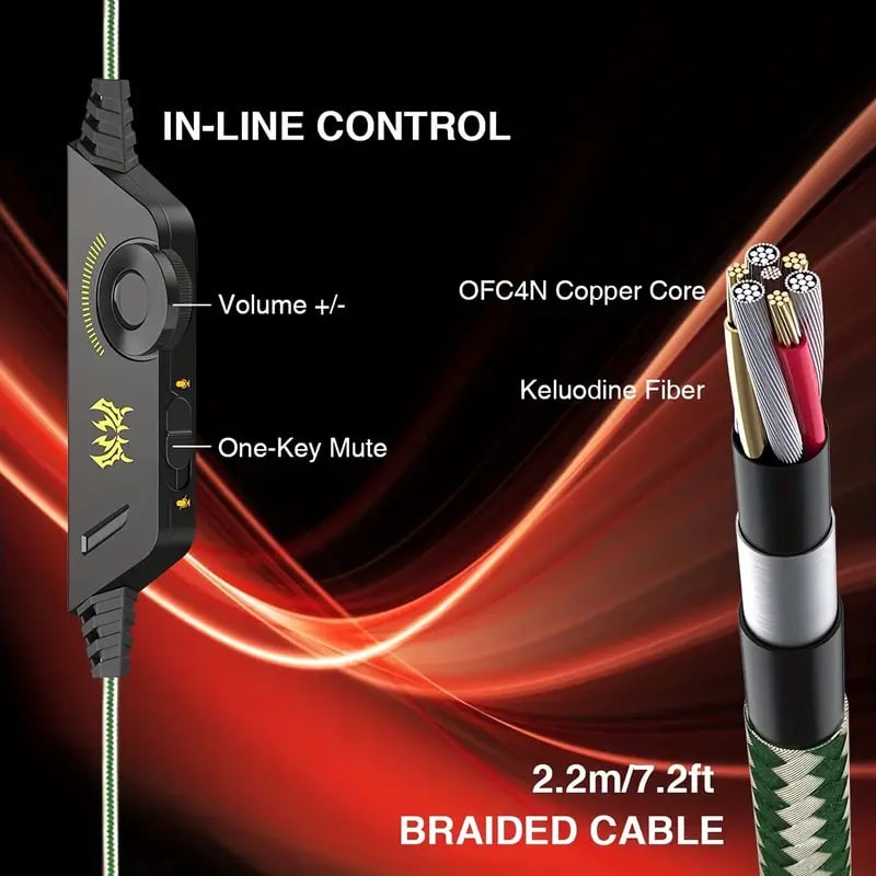 【IN-LINE SOUND CONTROLS】Volume control and mute switch are close at hand for quick audio adjustment, the extra-long (2.2meters) and military grade durable braided wire enables you position audio controls right at where you need them.