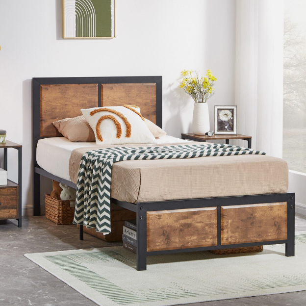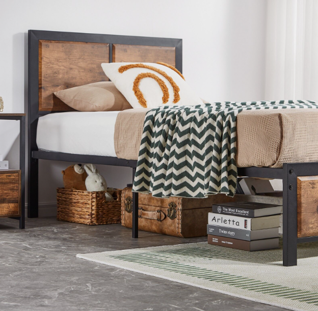 ² Industrial design style】The unique color brought by the wooden boards makes this bed more retro. The combination of metal slats and wooden boards will also make you feel comfortable and warm when you return home. It is suitable for all industrial and country style decorations.