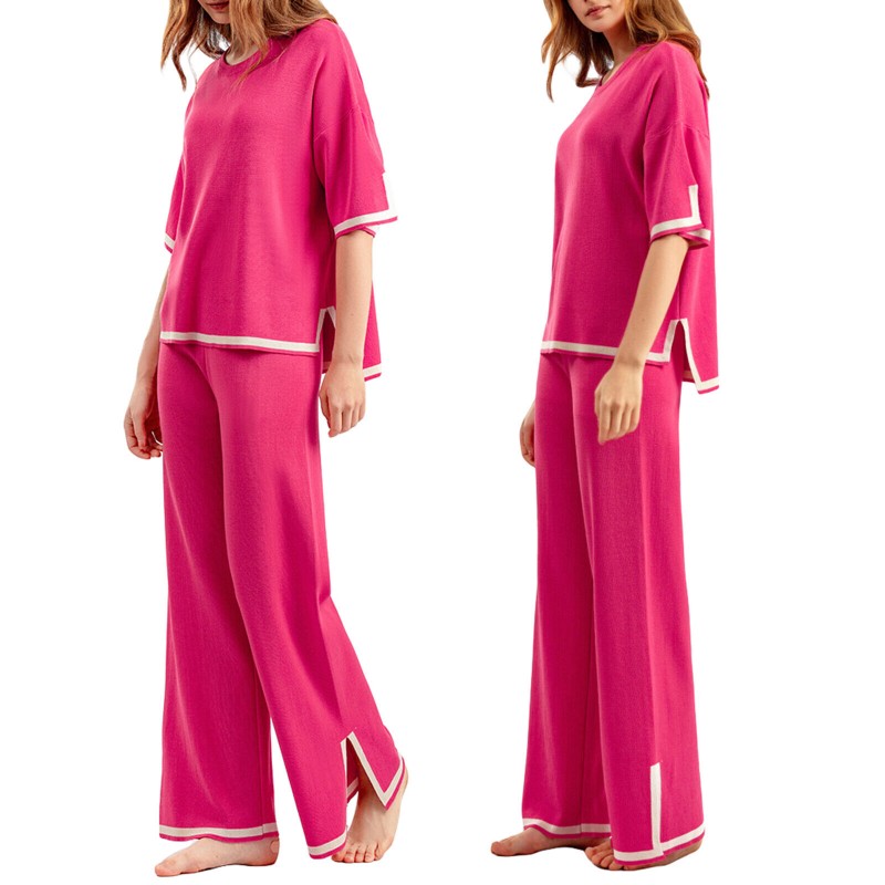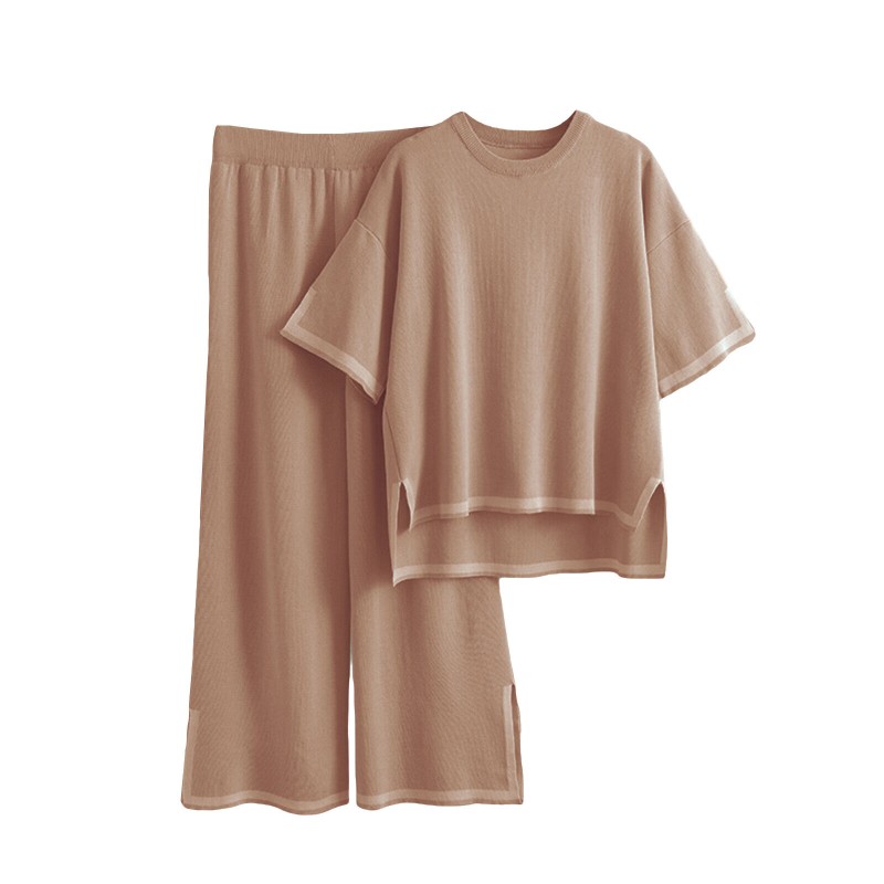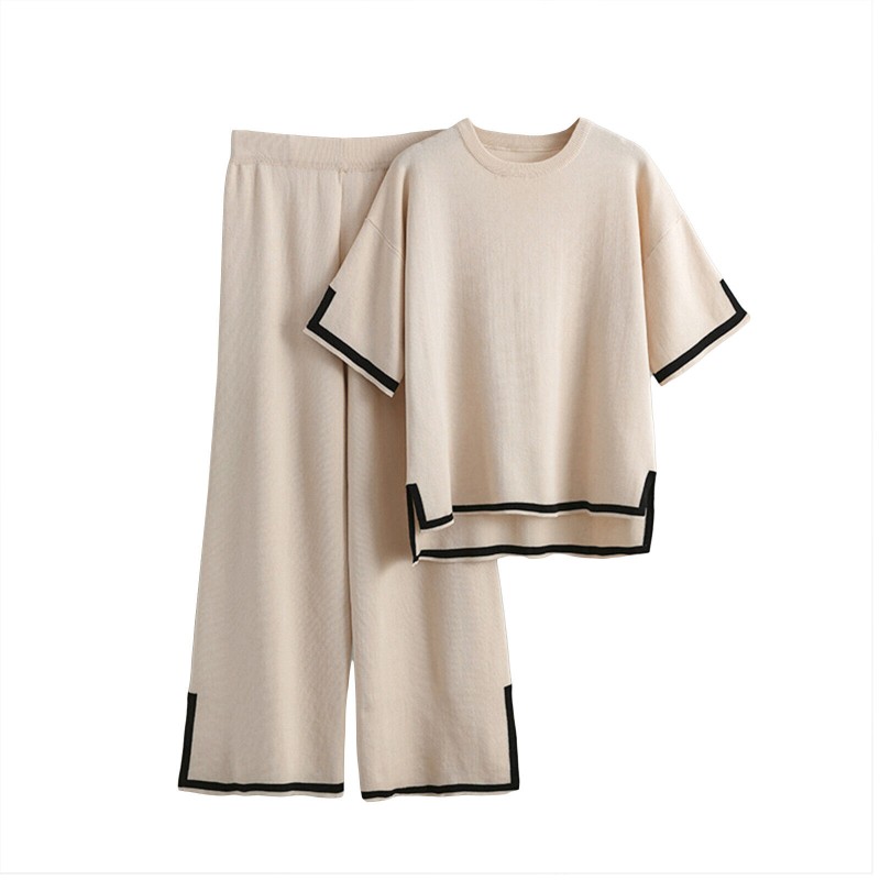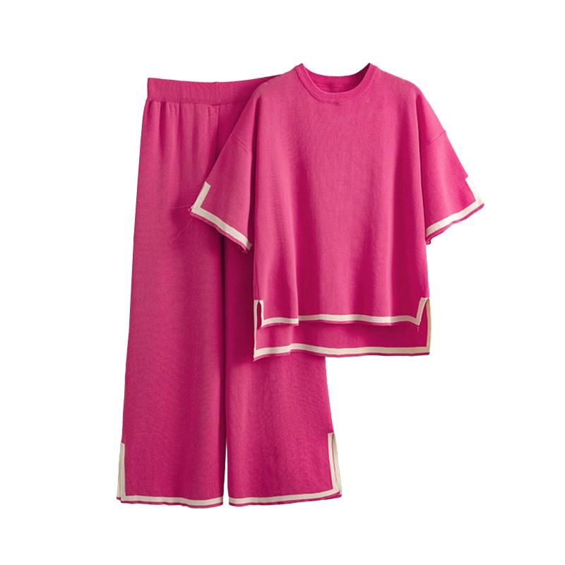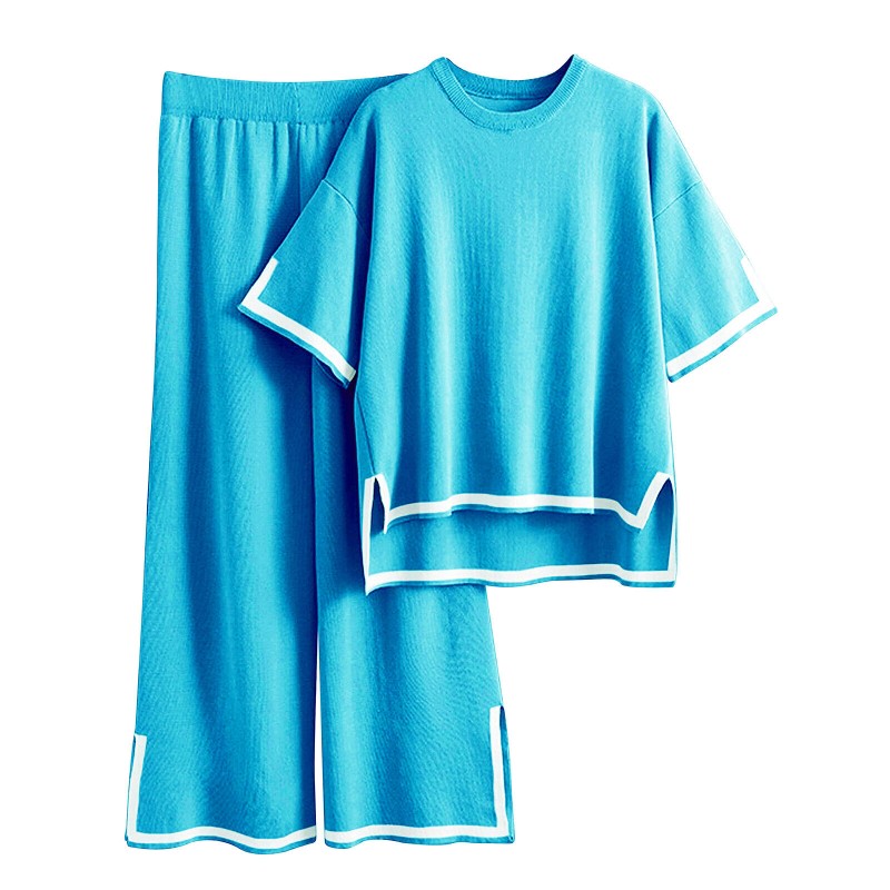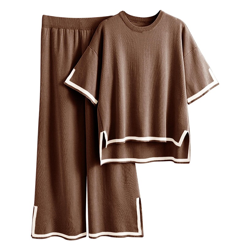 Women Casual Outfit Short Sleeve Crew Neck Tops Wide Leg Pants Loungewear Set